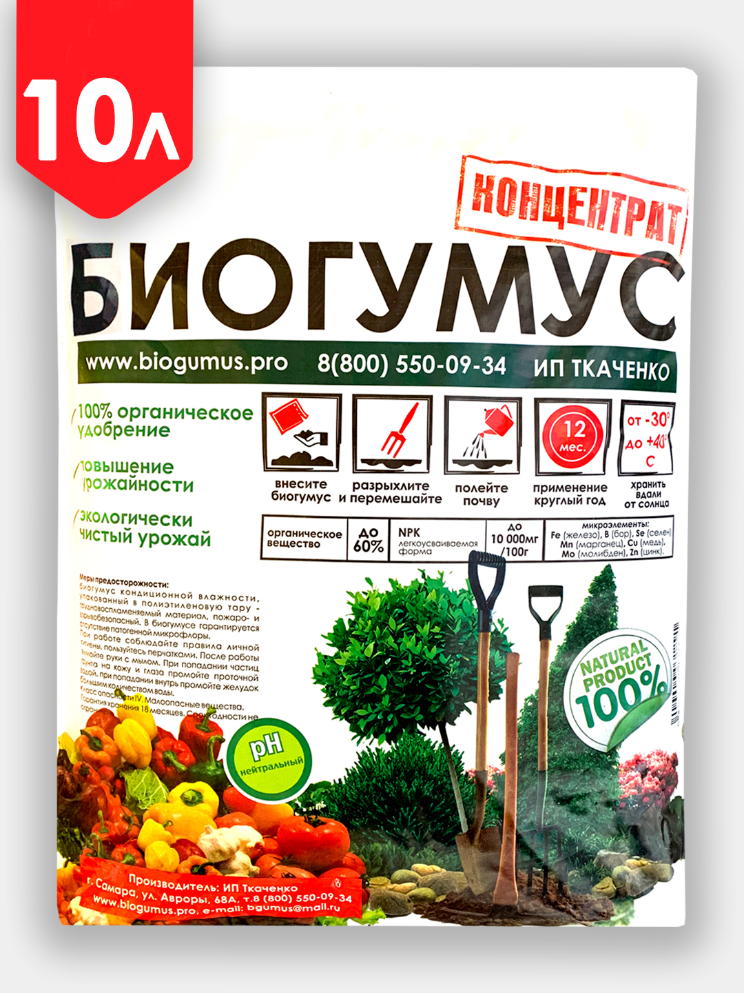 Органическое удобрение Ткаченко Илья/Biogumus.pro/ECOLOGICA Биогумус концентрат, 10л