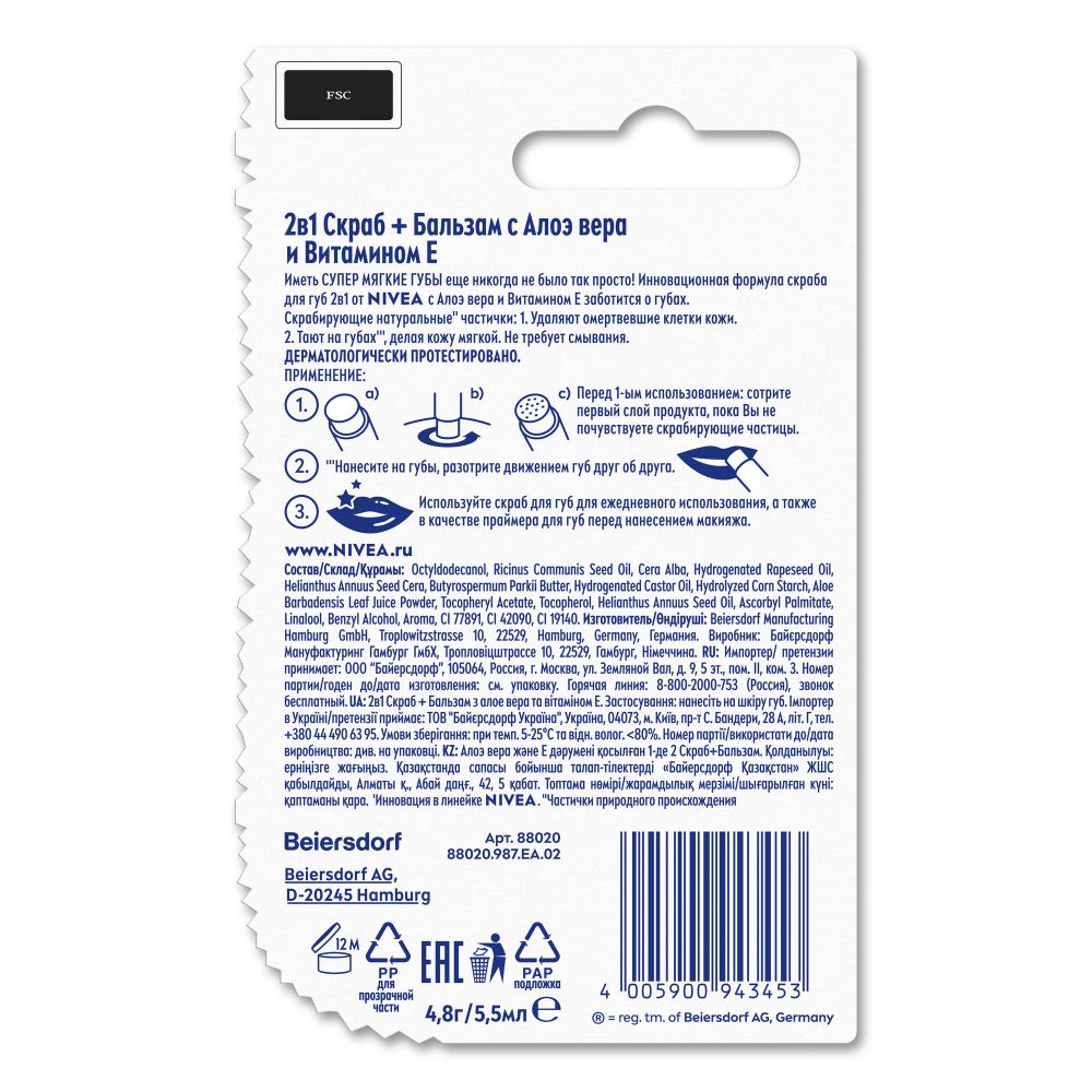 Нивея 2в1 скраб+бальзам с маслом шиповника Вит.E для губ 4,8г 88023