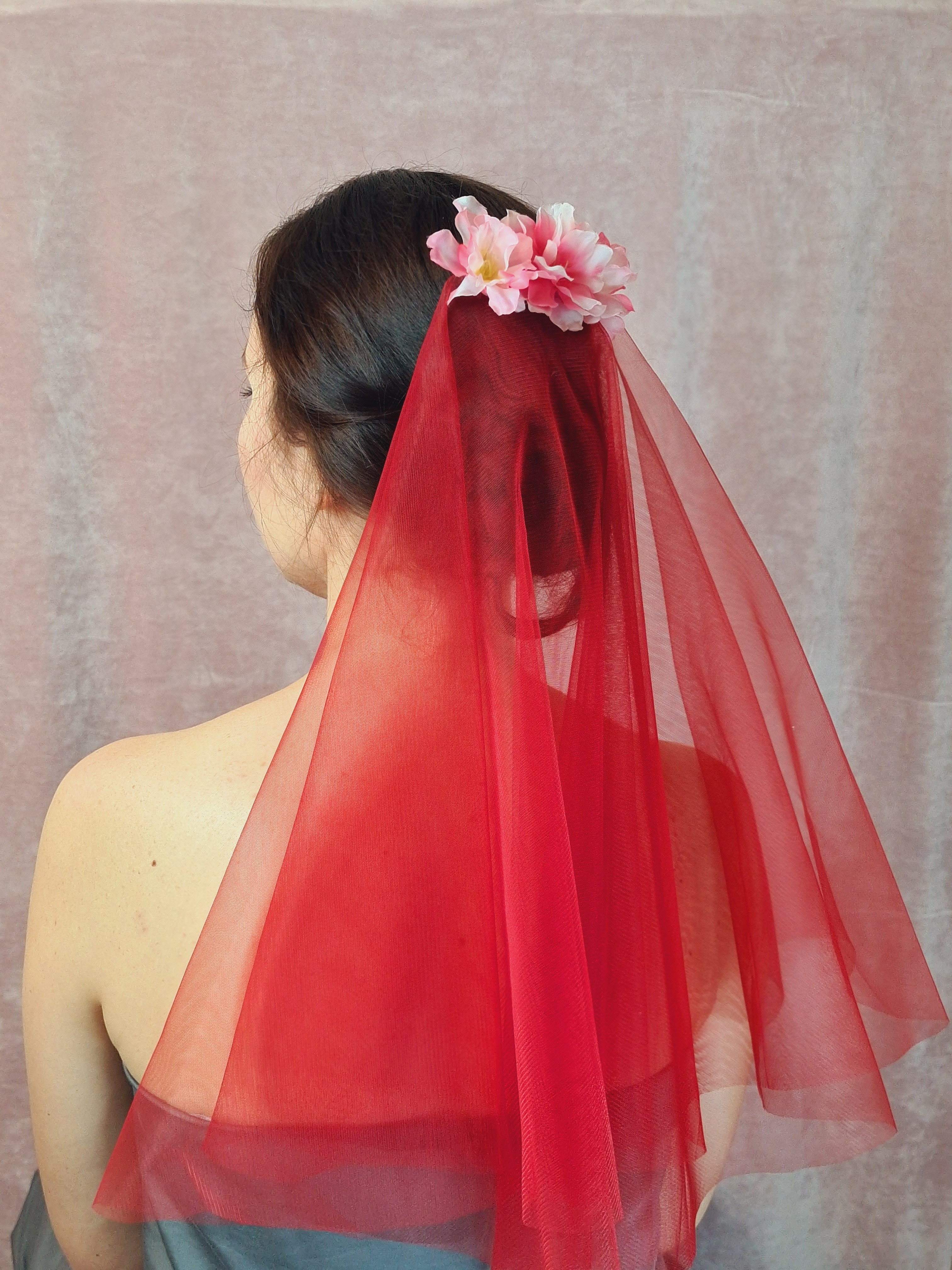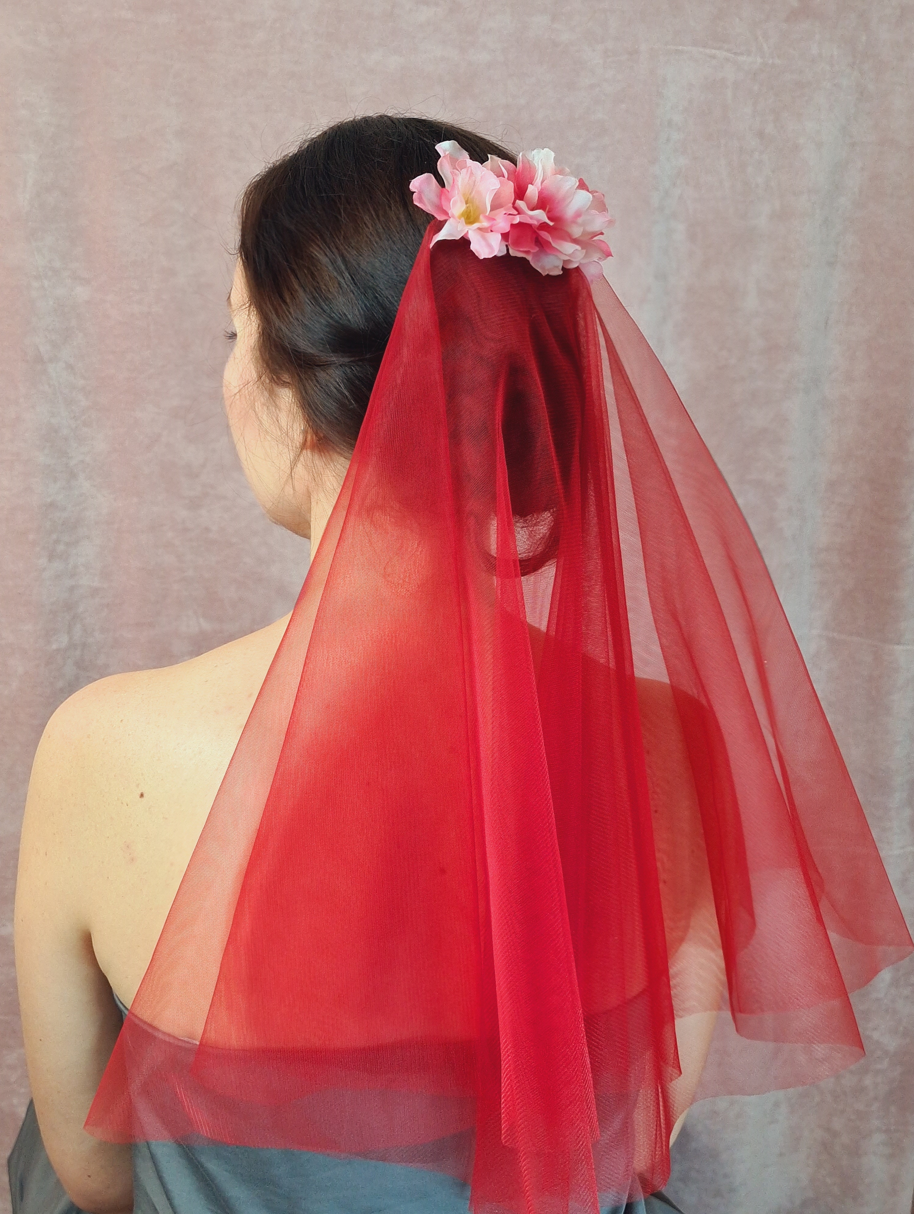 Фата красный / Фата для девишника / фата для девичника / фата свадебная / вуаль / фата для карнавала
