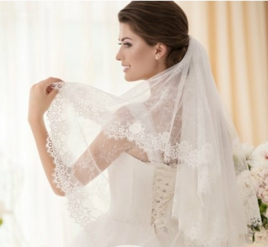 фата свадебная, полностью кружевная с кружевом Шантильи по краю, без гребня