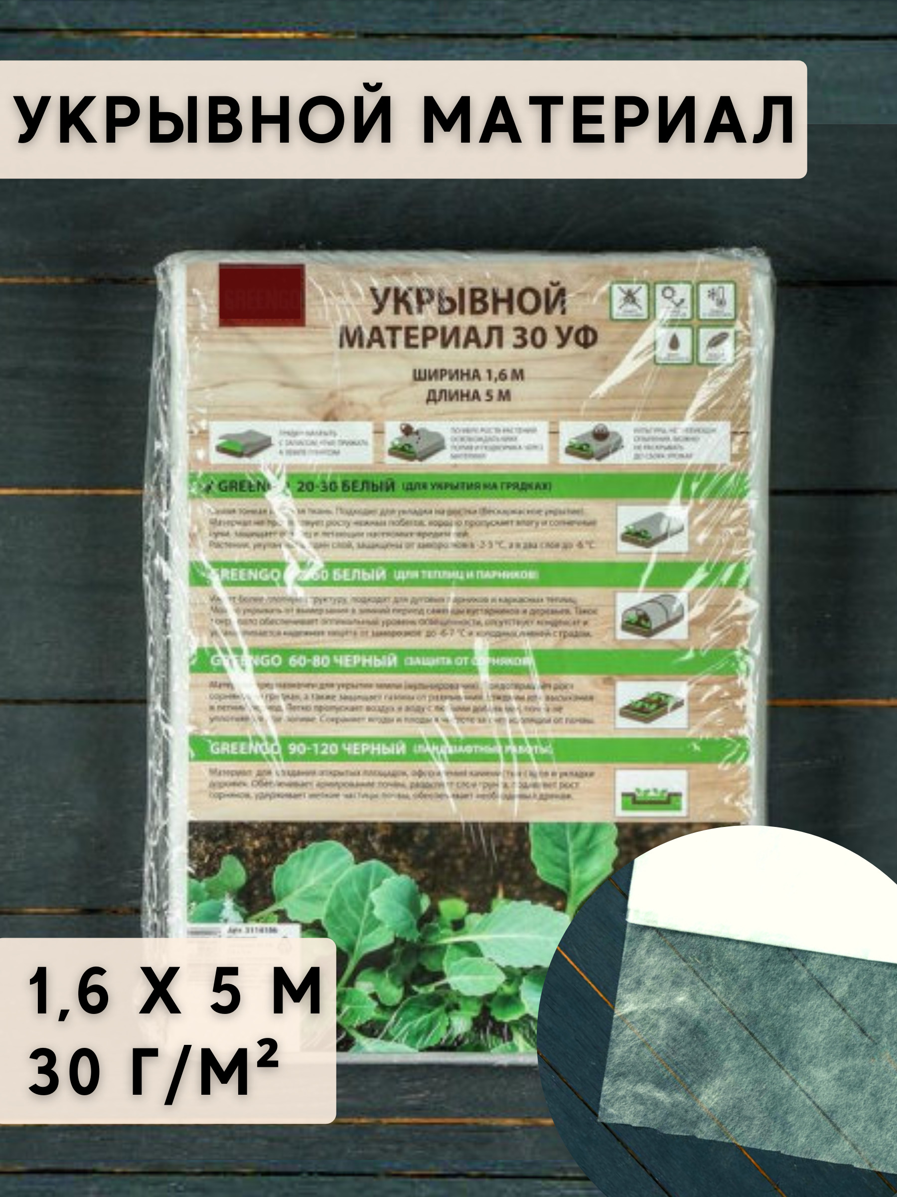 Агроткань от сорняков, Укрывной материал, 1,6x5, 30 г-кв.м