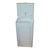 Умывальник Чистюля в комплекте с ЭВН 15л тумба-сталь, цвет-белый, пластиковая мойка
