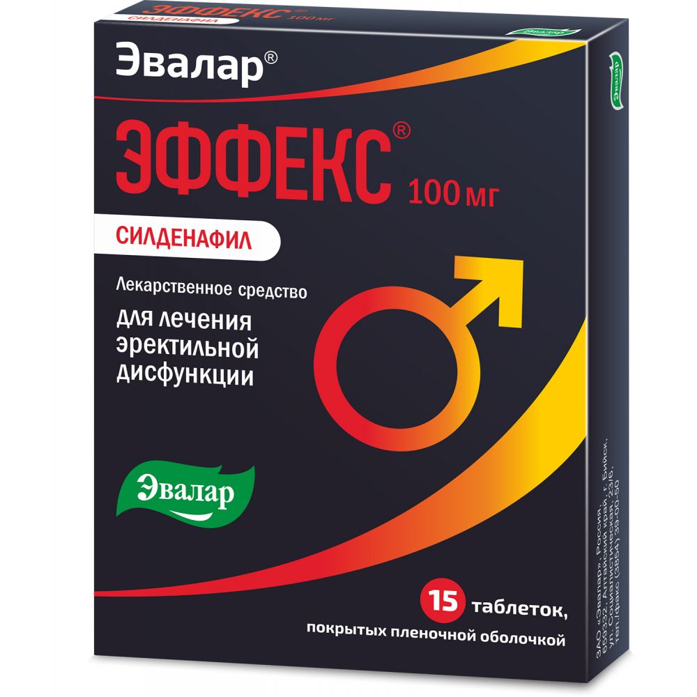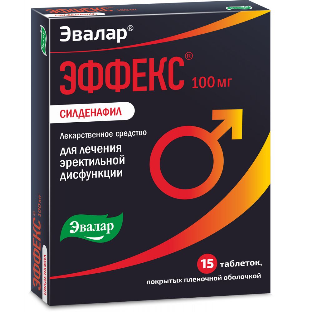 Эффекс силденафил 100 мг 15 шт. таблетки, покрытые пленочной оболочкой