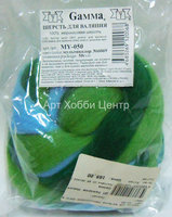 "Gamma" MY-050 "Шерсть для валяния" 100\% полутонкая шерсть 50 г №6069 зелёный/св.голубой/з.яблоко