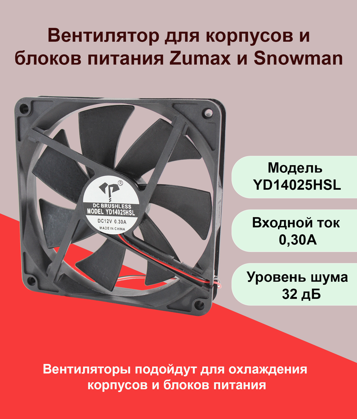 Вентилятор YD14025HSL 140х140х25 мм, 2 pin / Кулер для корпусов и блоков питания