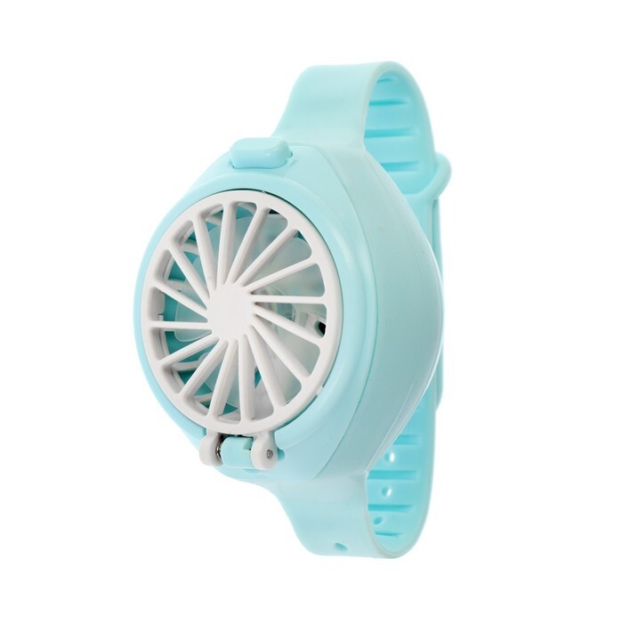Мини вентилятор в форме наручных часов LOF-10, 3 скорости, поворотный, голубой