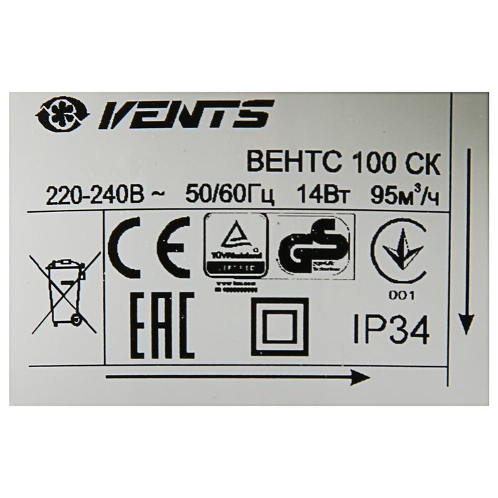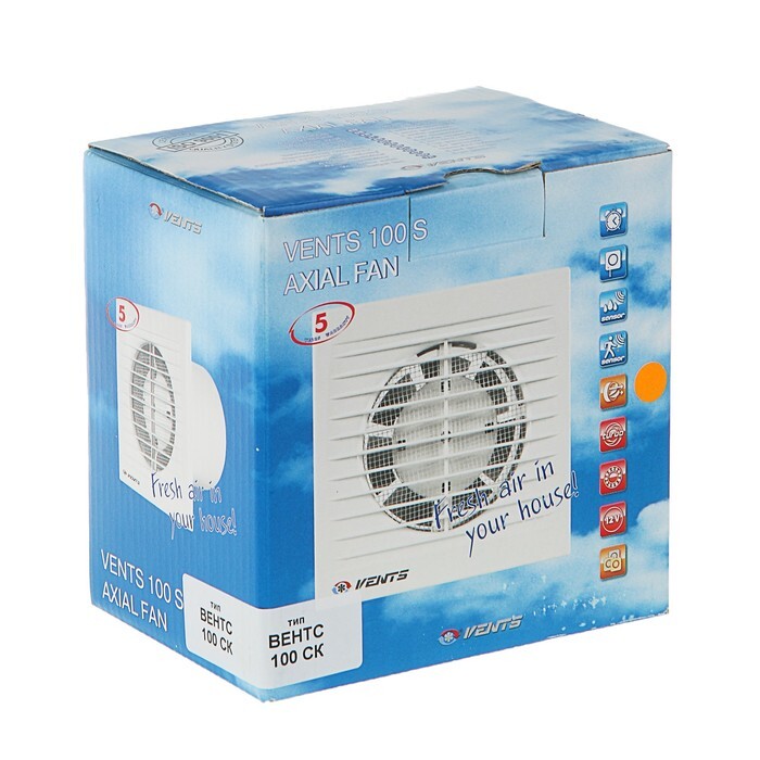 Вентилятор вытяжной 100 С К, d100 мм, 220-240 В, с обратным клапаном, цвет белый