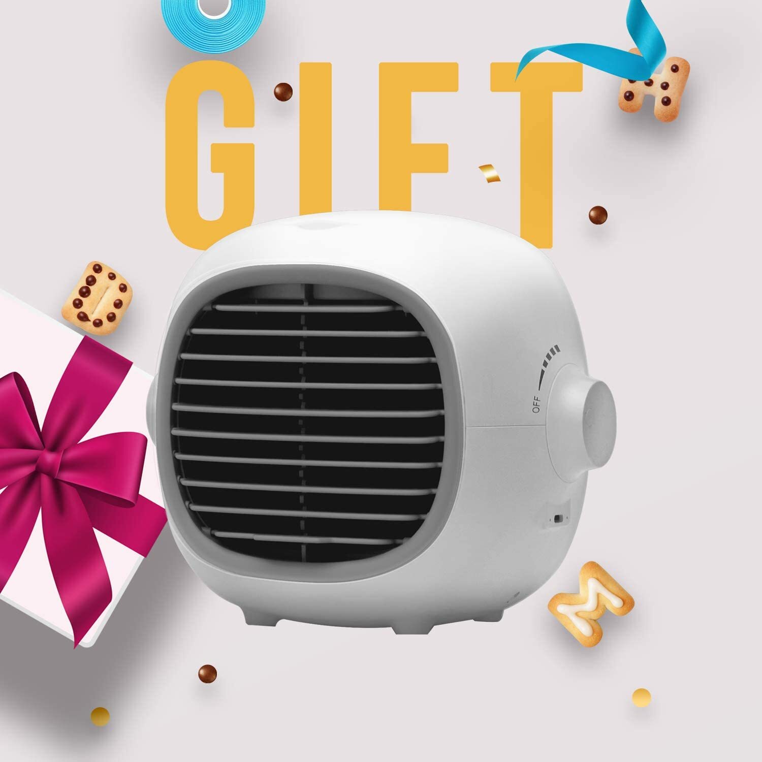 Портативный вентилятор GX Q3 white bardo, белый, темно-бордовый