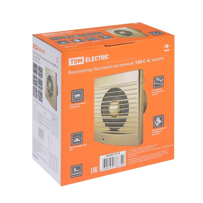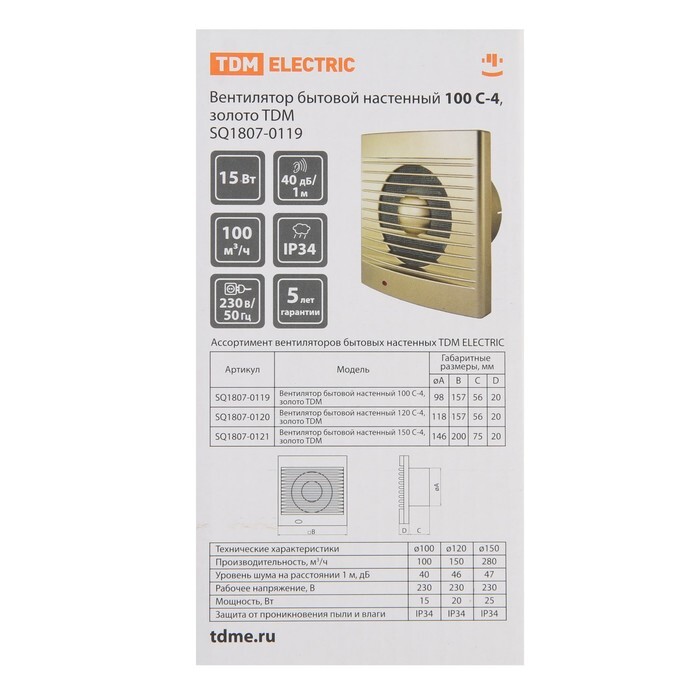 Вентилятор вытяжной TDM 100 С-4, d100 мм, золото