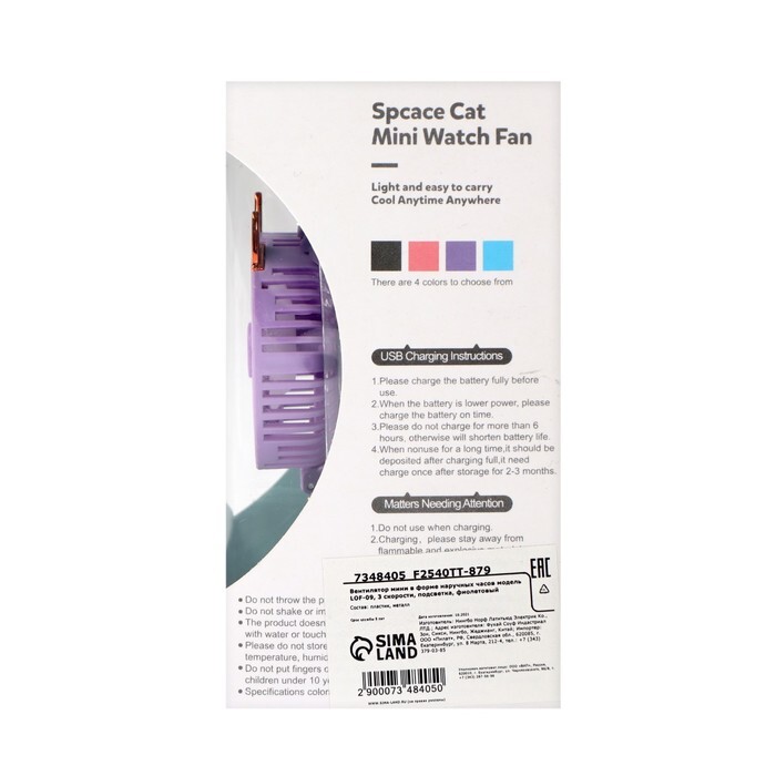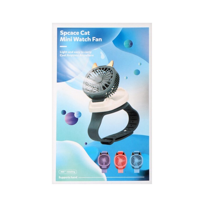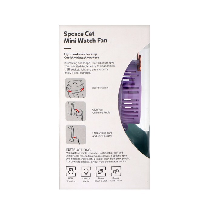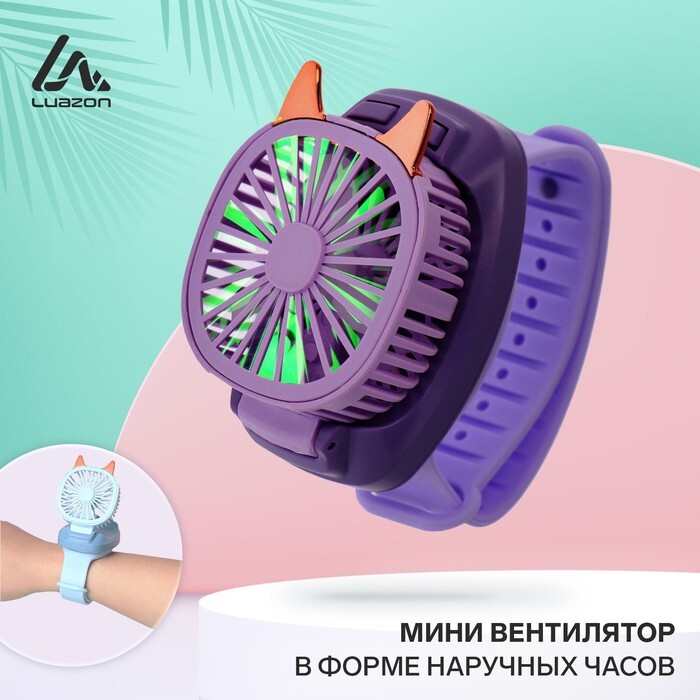 Мини вентилятор в форме наручных часов LOF-09, 3 скорости, подсветка, фиолетовый