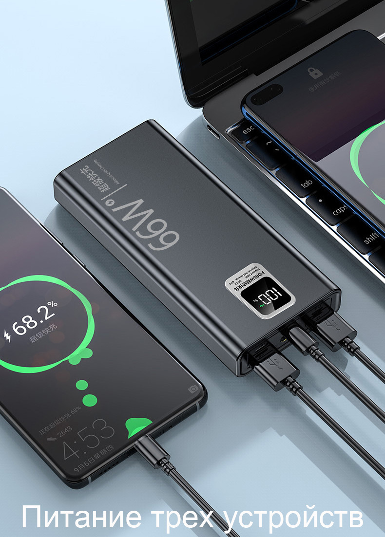 20000 мАч ss Банк питания для быстрой зарядки мощностью 66 Вт