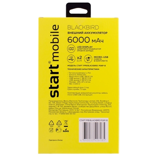 Аккумулятор Startmobile PPB Blackbird P06P, 6000 мАч
