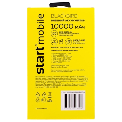 Аккумулятор Startmobile PPB Blackbird P10P, 10000 мАч