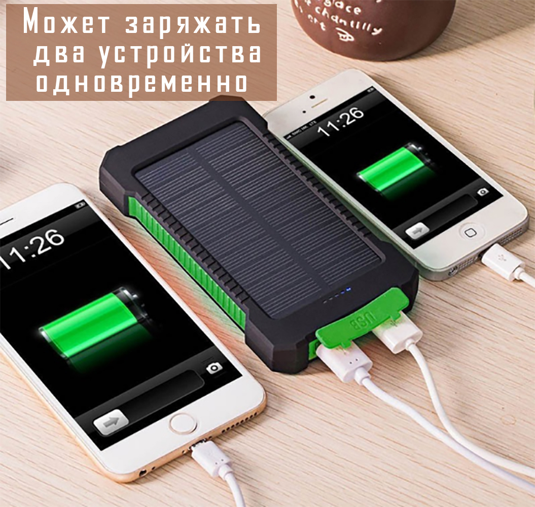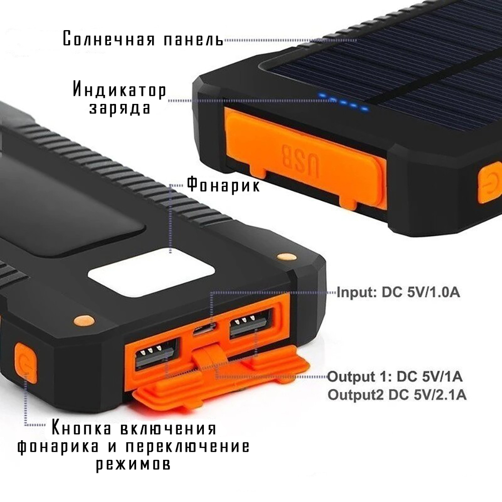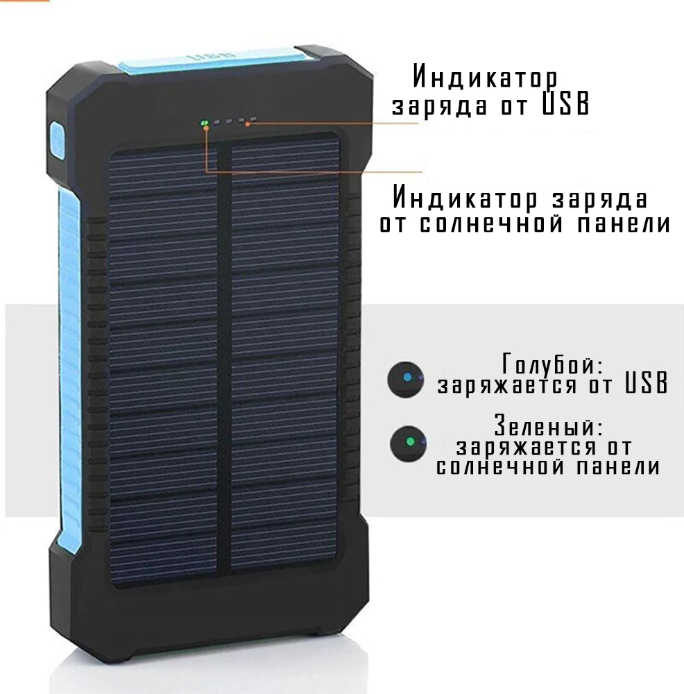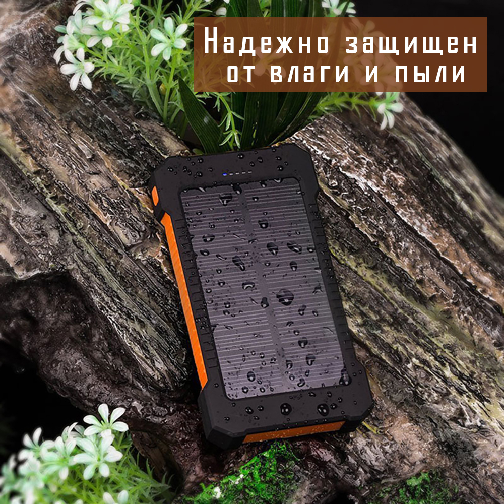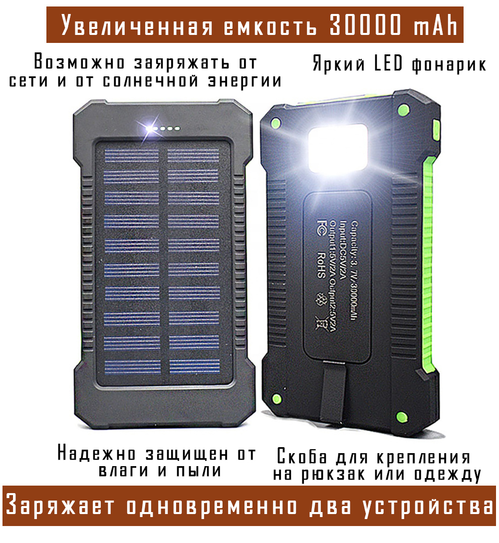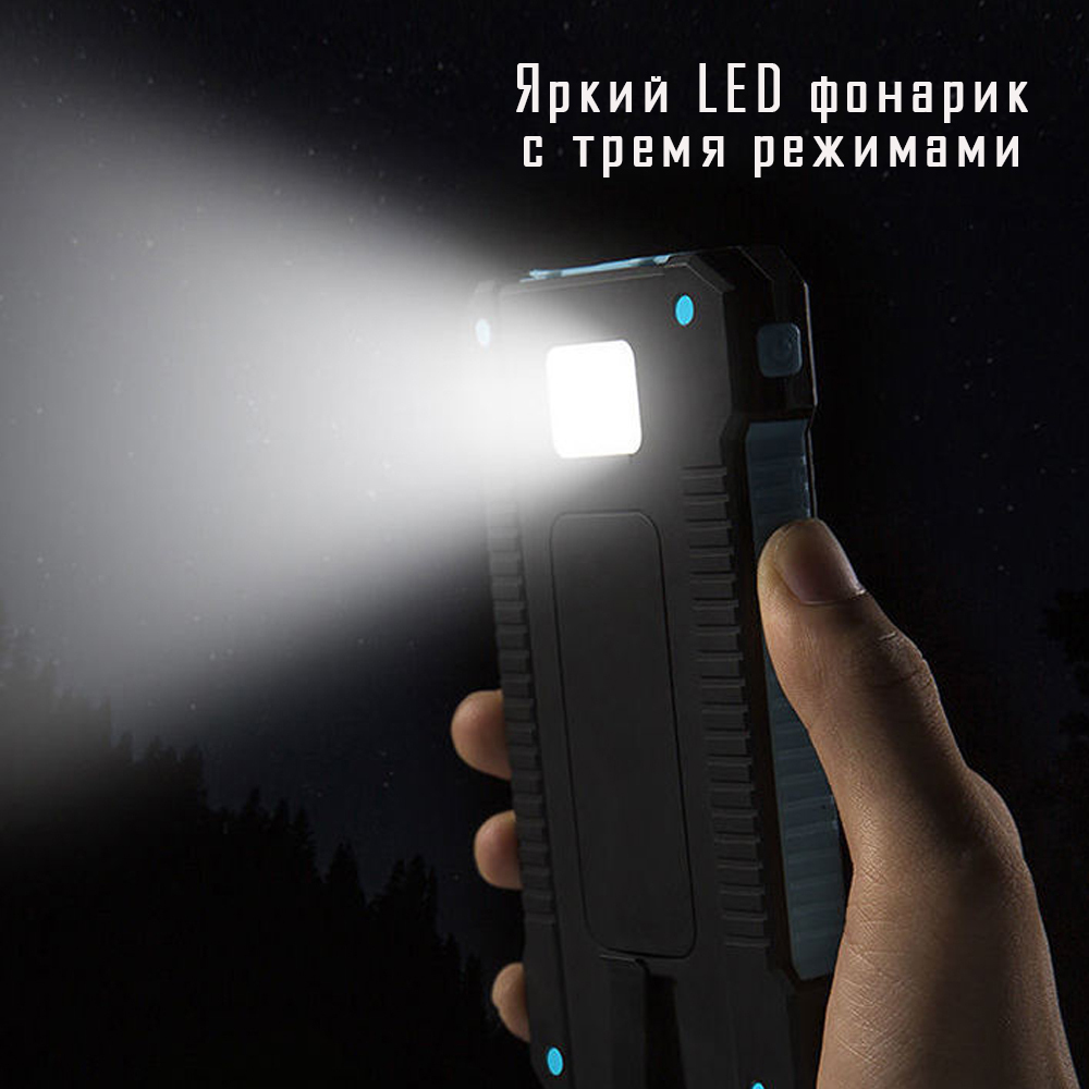 Внешний аккумулятор MAGNUS Predator / Powerbank увеличенная емкость 30000 mAh / Повербанк с солнечной батареей и встроенным фонариком / Черный
