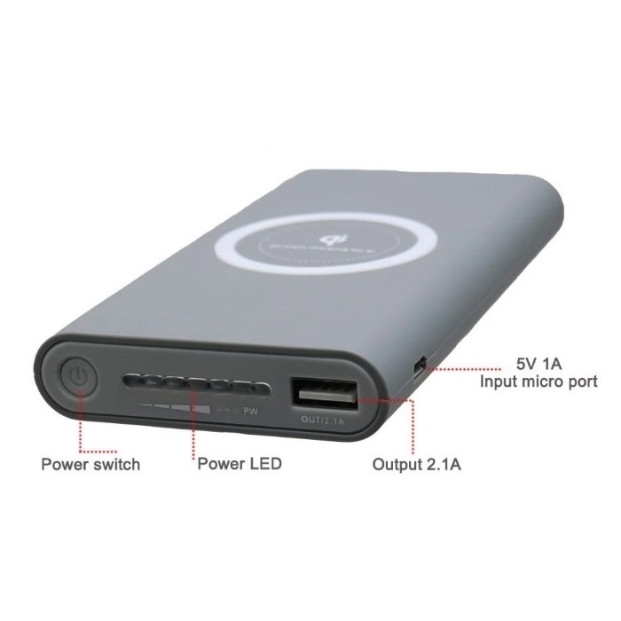 Внешний аккумулятор с функцией беспроводной зарядки Qi Power Bank Wireless 20000 мАч (Серый)