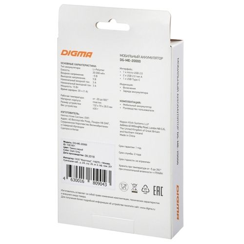 Аккумулятор ORICO K20P, 20000 mAh