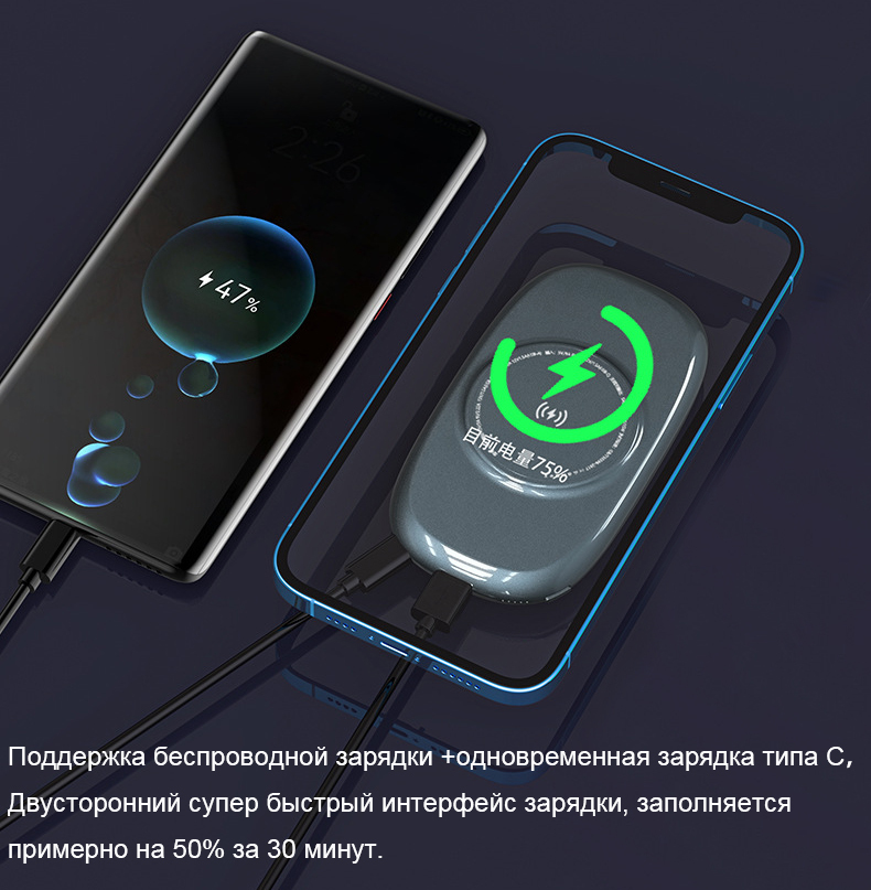 Беспроводная быстрая зарядка внешний аккумулятор 20000 mAh