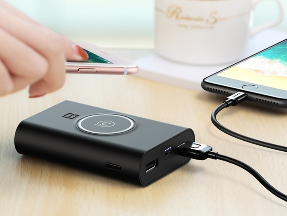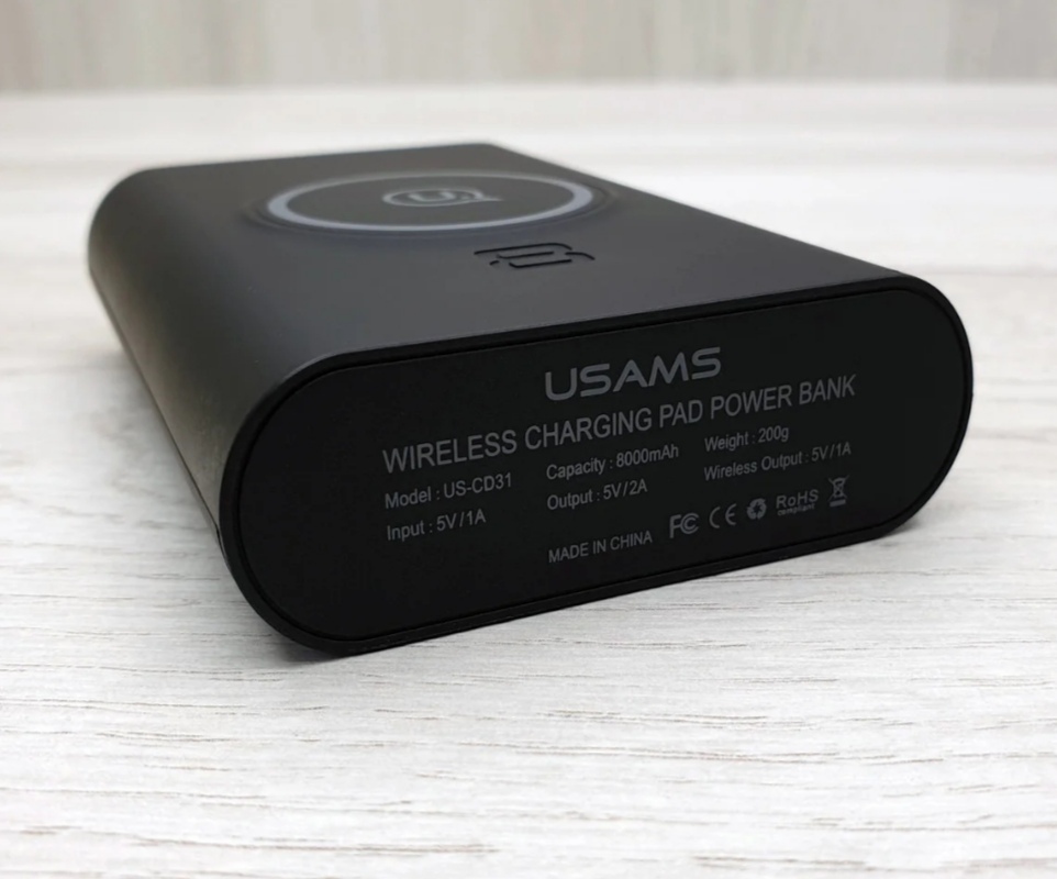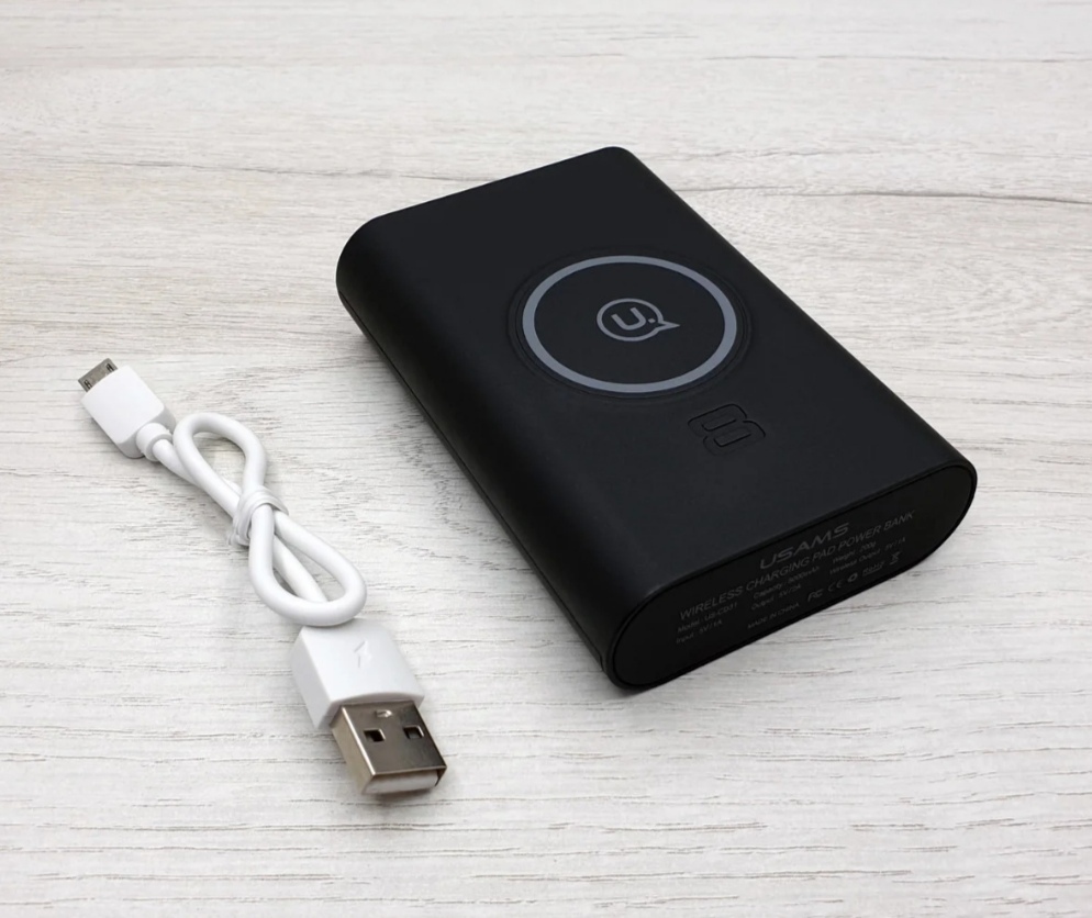 Внешний аккумулятор, с беспроводной зарядкой, 8000 мАч, черный