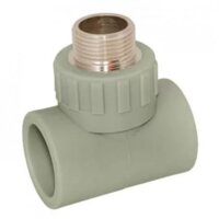 Тройник Политэк 9510002012С, комбинированный с наружной резьбой 20 х 1/2", серый