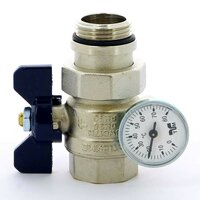 Кран шаровой НВ с разъемным соединением с термометром для коллектора TIEMME 1" бабочка синяя