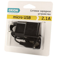 Зарядное устройство сетевое Oxion ACA-006, с кабелем, 2.1A output, черный