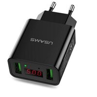 Сетевое зарядное устройство Usams CC040 2.2А на 2 USB с дисплеем, черное