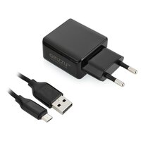 Сетевое зарядное устройство Ginzzu, 3.1A, 2 USB, с кабелем micro USB, нейлоновая оплётка, черный