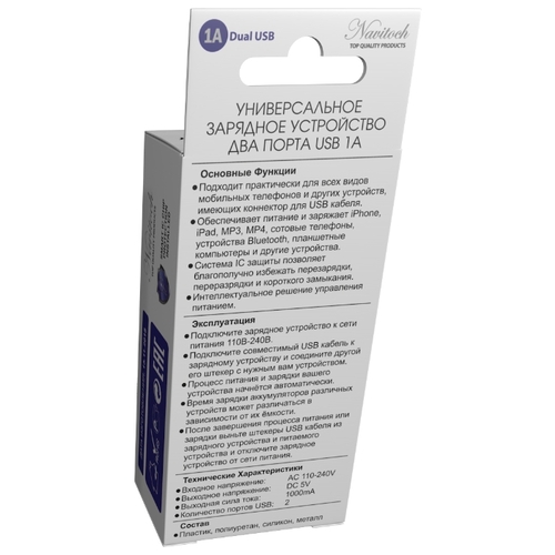 Сетевая зарядка Navitoch 2xUSB JL-T527 1A