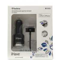 Автомобильное зарядное устройство Belsis BC5512, 1USB, 1A, черный, кабель Apple 30pin
