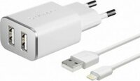 Сетевое зарядное устройство Deppa 2 USB 2.4А + дата-кабель Apple 8pin MFI