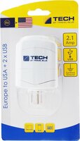 Сетевой адаптер-переходник Travel Blue "EU-to-USA", с USB-портом для зарядки, цвет: белый