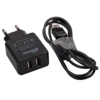 Сетевое зарядное устройство Ritmix RM-2095AC, 2USB, 2A, черный, кабель microUSB