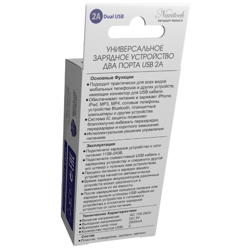 Сетевая зарядка Navitoch 2xUSB JL-020 2A