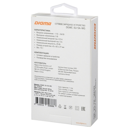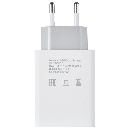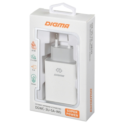 Сетевая зарядка Digma DGWC-3U-5A-WG