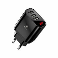 Сетевое зарядное устройство Baseus 3xUSB с дисплеем, черный