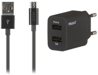 Сетевое зарядное устройство Deppa Ultra 2 USB 2.1 А microUSB + кабель microUSB (черный)