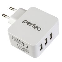 Сетевое зарядное устройство PERFEO CUBE 3, 3xUSB, 4.8А, белый