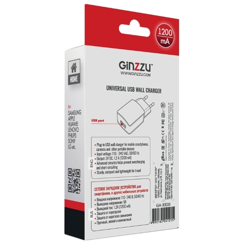 Сетевая зарядка Ginzzu GA-3003B