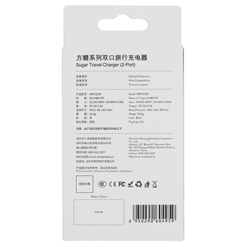 Сетевая зарядка Rock Sugar Travel Charger 2 USB