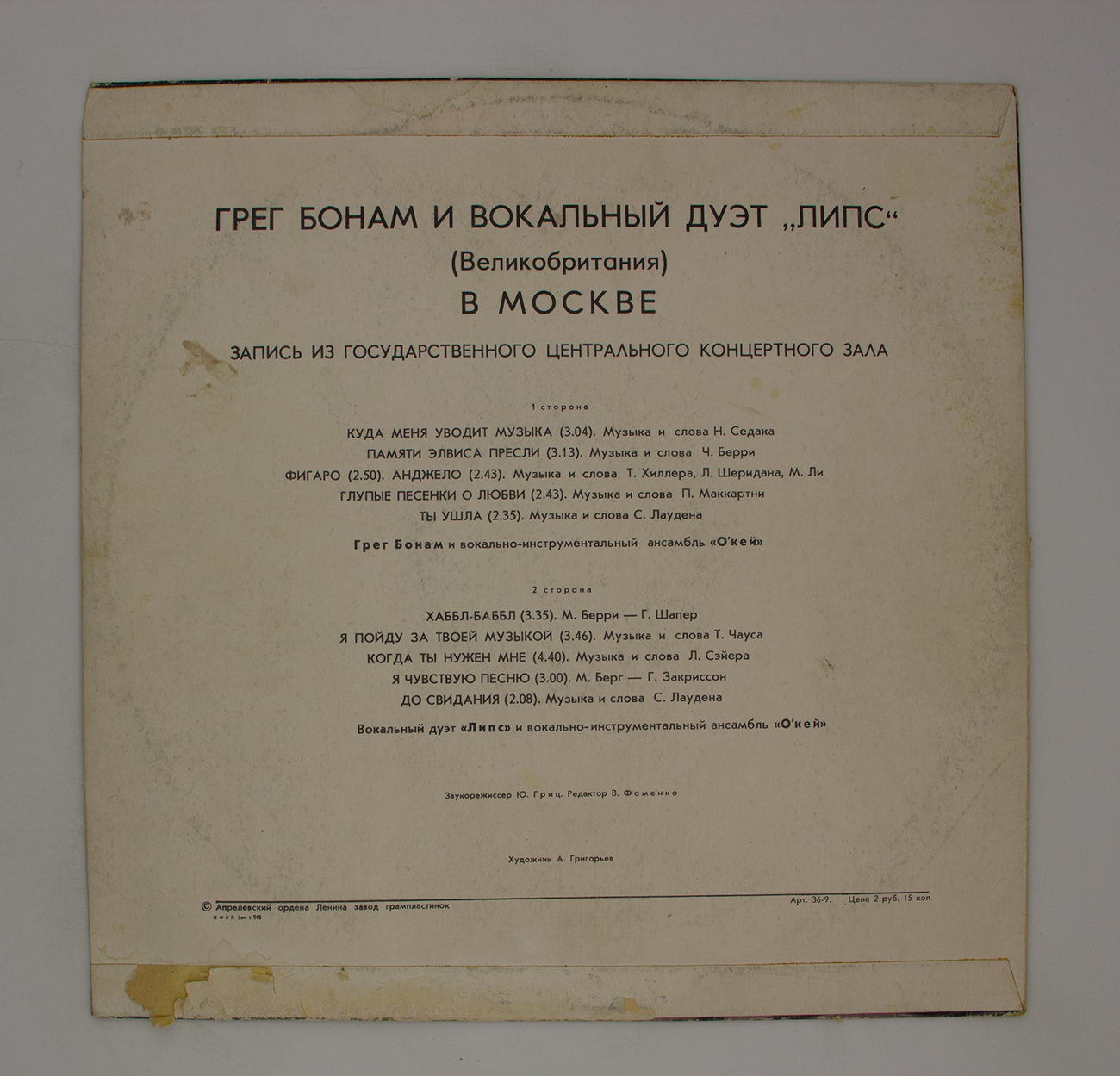 Виниловая пластинка Грег Бонам И Вокальный Дуэт Липс - В москве, - (LPx1)