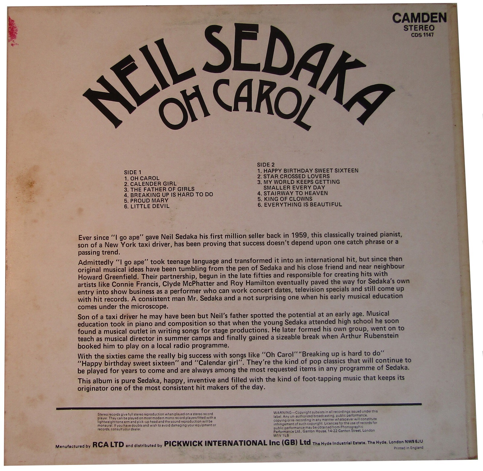 Neil Sedaka. Oh Carol. Виниловая пластинка 12" 33об/мин. Англия 1974г