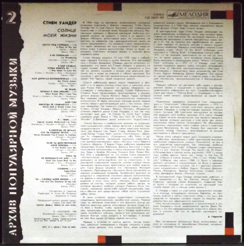 Виниловая пластинка Wonder Stevie Солнце Моей Жизни