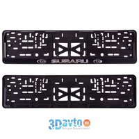 Рамка для номера пластм с защелкой черная субару (рельеф серебро) 1шт