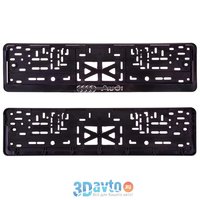Рамка для номера пластм с защелкой черная ауди (рельеф серебро) 1шт