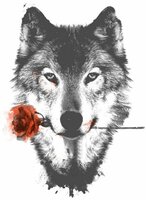 Наклейка на авто Волк с розой 10 см х 14 см