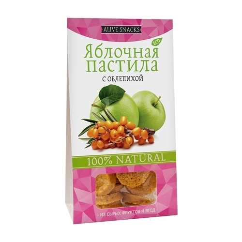 Пастила Живые снеки яблочная с облепихой 35 г