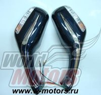 Зеркала (070) пласт.Каплевидные объемные синие, поворотник (круглый разъем под скутер)