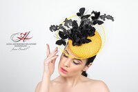 Желтая вечерняя шляпка с цветами, кружевом и вуалью "Танец бабочек"