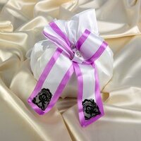 Сумочка невесты атласная, белая с лиловой окантовкой