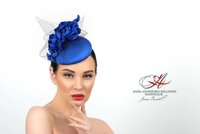 Синяя шляпка таблетка с вуалью и цветами "Королевский синий"